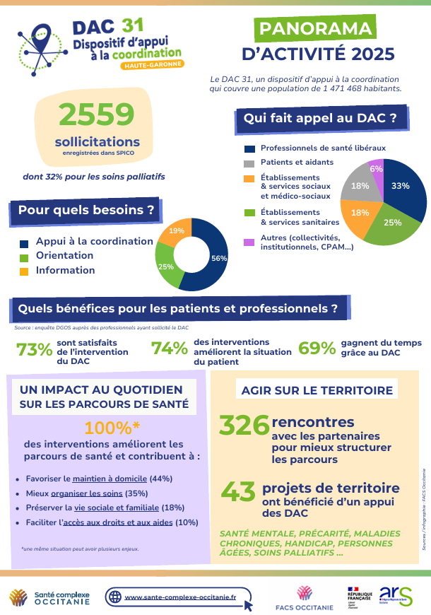 Le DAC31 a également contribué à plusieurs projets locaux, notamment dans les domaines de la santé mentale, de la précarité, des soins palliatifs et du handicap, participant ainsi à une meilleure coordination globale.